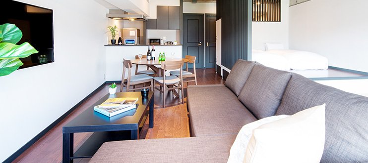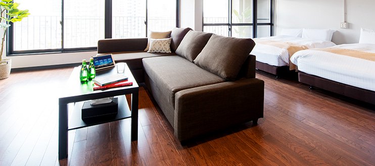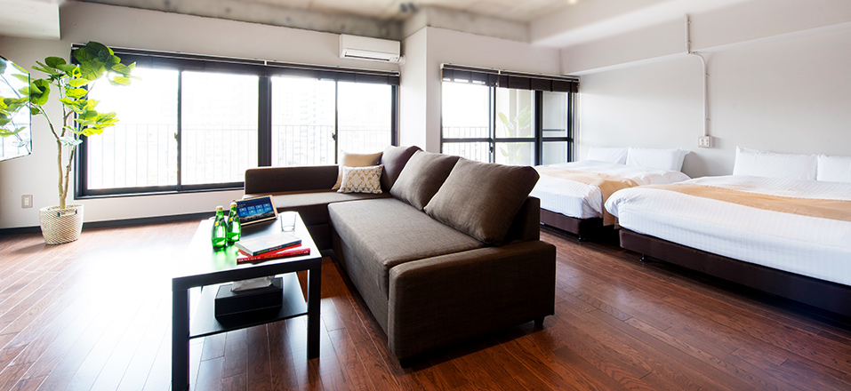 Depends on room types. Standard Double Double rooms and SWEET rooms provide two double beds and an sofa beds, and Japanese-Western Style room provide two double beds and a Japanese futon which can be suitable up to 6 people.